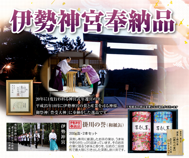 【伊勢神宮奉納品】伊勢神宮の食と産業を司る神様、御祭神「豊受大神」に奉納をした逸品です。 【掛川の誉】深蒸し煎茶専用のお茶畑から、春の光を浴びて成長したお茶の葉だけを厳選し摘み取りました。このお茶には、うま味と薫り、まろやかさと香ばしさがたっぷり詰まった、美笠園が自信を持って産地からお届けする、人気No.1の深蒸し掛川茶です。
